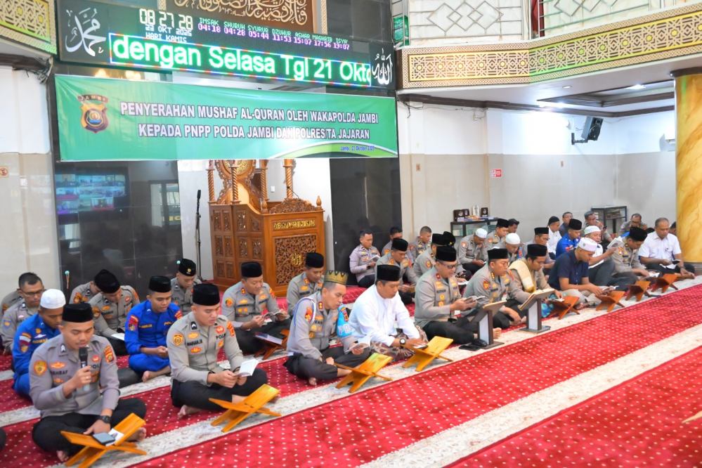 Jambi - Wakapolda Jambi Brigjen Pol. M. Mustaqim menyerahkan Mushaf Al-Qur’an kepada PNPP (Pegawai